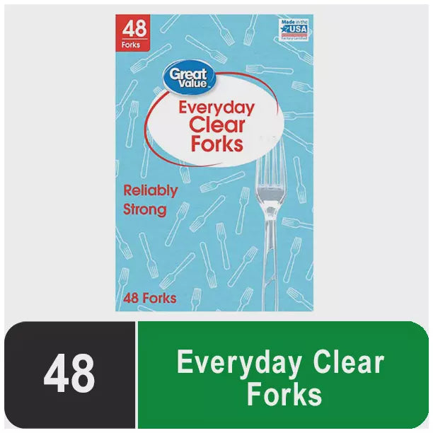Great Value Premium Disposable Plastic Forks, Clear, 48 Count